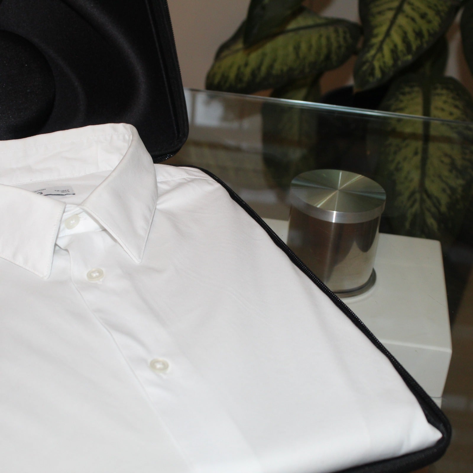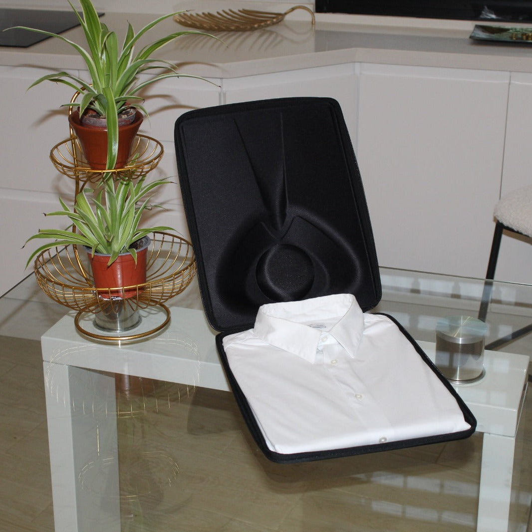 El estuche para camisas está pensado para que puedas llevar tu camisa sin arrugas a cualquier parte: viajes, eventos o escapadas. Cuando saques la camisa estará igual que cuando la guardaste. Solo tienes que doblarla siguiendo la guía incluida en los paneles interiores, y quedará protegida y lista para usar.